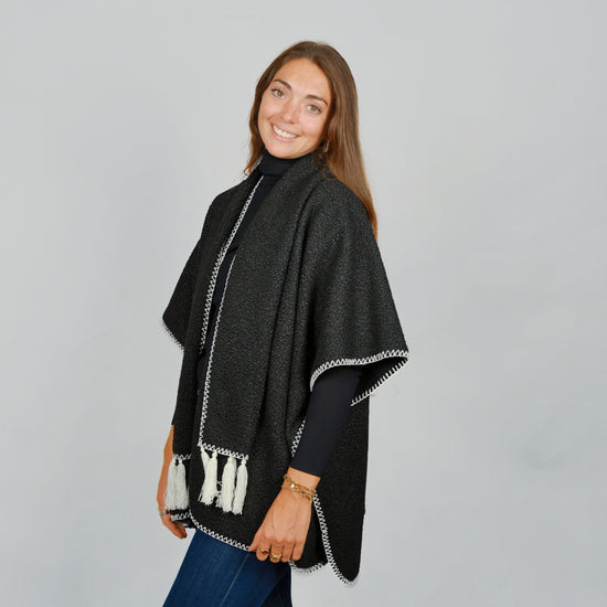 BELTED STRIPED RUANA & WESTERN HAT SET