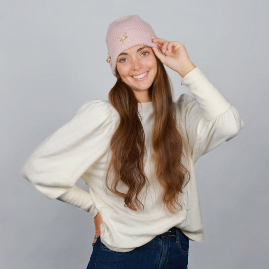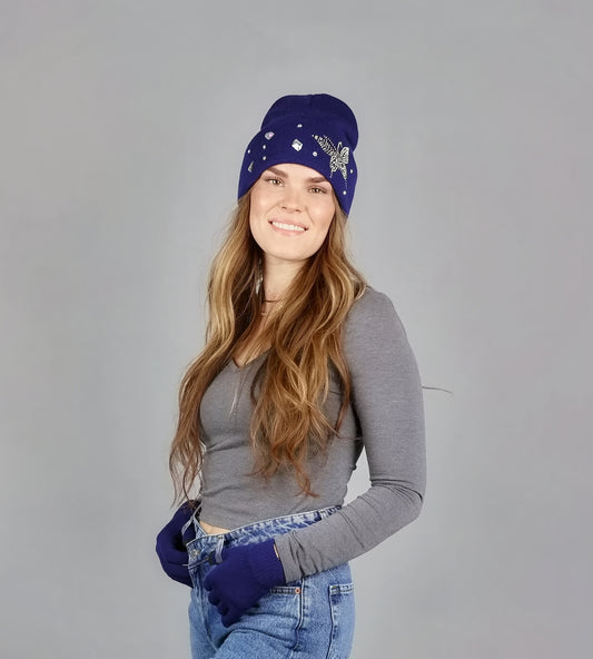 BUTTERFLY RHINESTONE CUFF BEANIES & TEXTING GLOVE SET