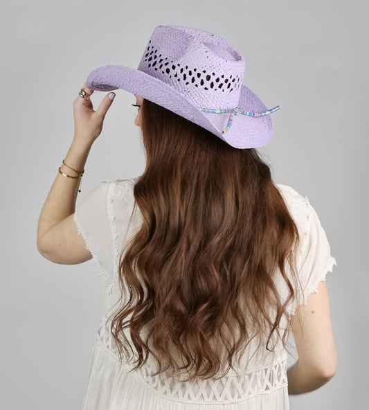 BELTED STRIPED RUANA & WESTERN HAT SET