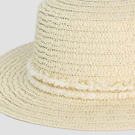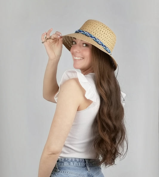 BRAID TRIM STRAW BUCKET CLOCHE HAT