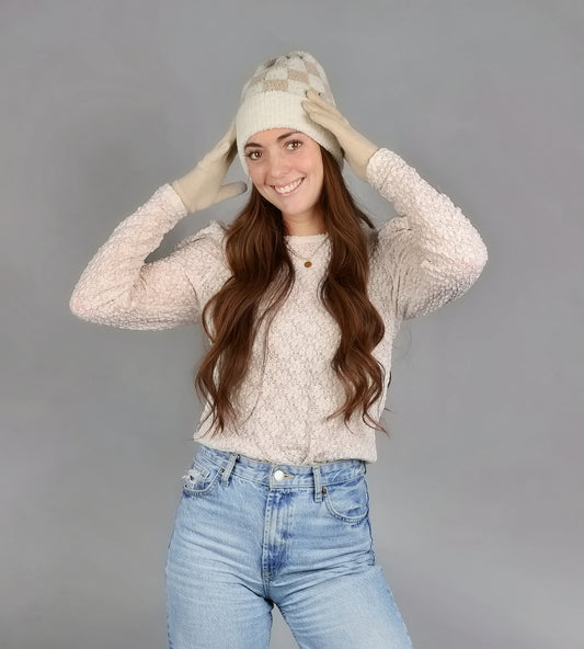 CHENILLE CHECKER BEANIE & MATCHING TEXT GLOVE SET