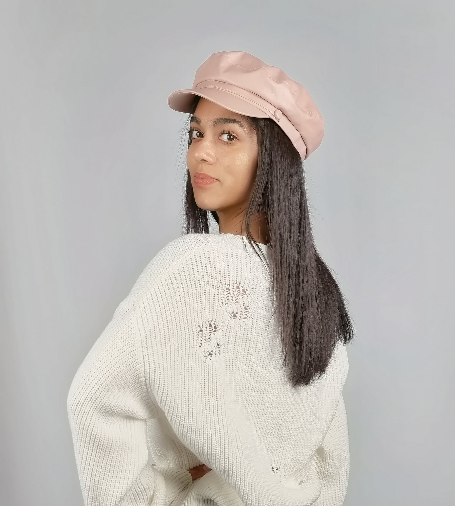 FAUX LEATHER/VEGAN LEATHER CABBY WITH SIDE BUTTON DETAIL