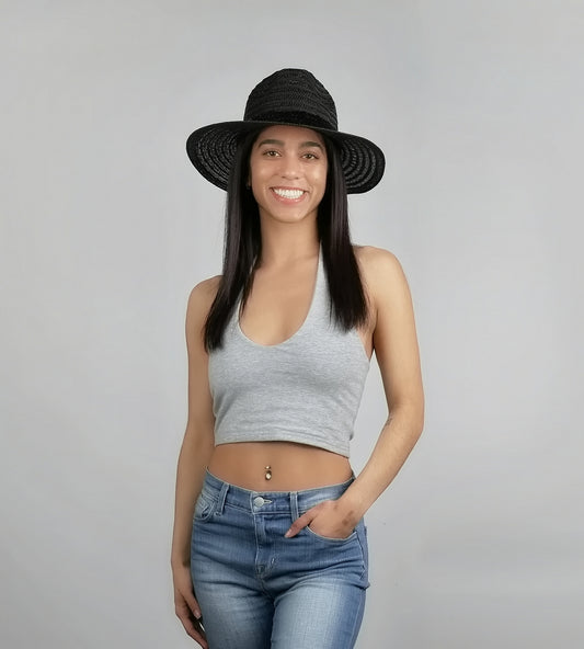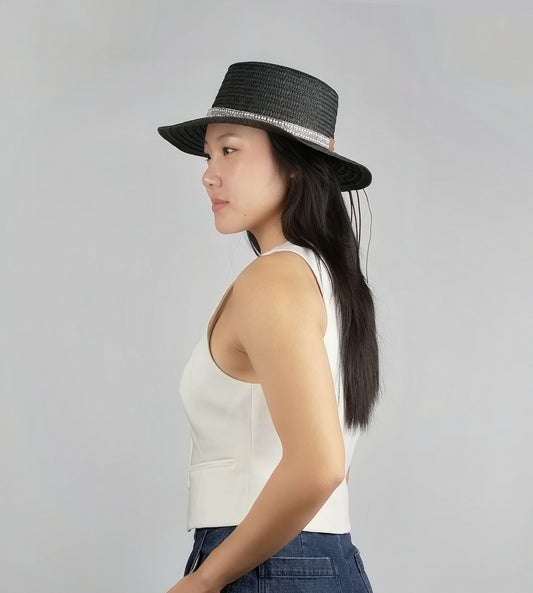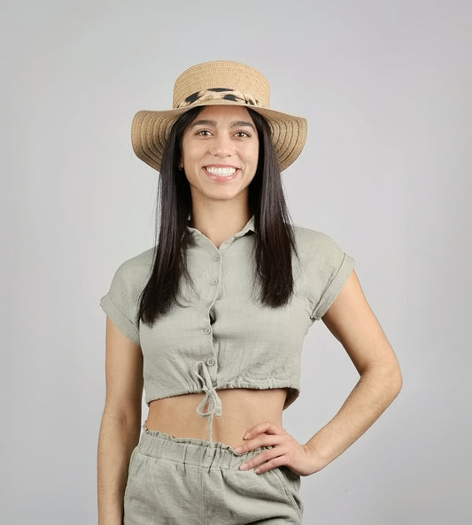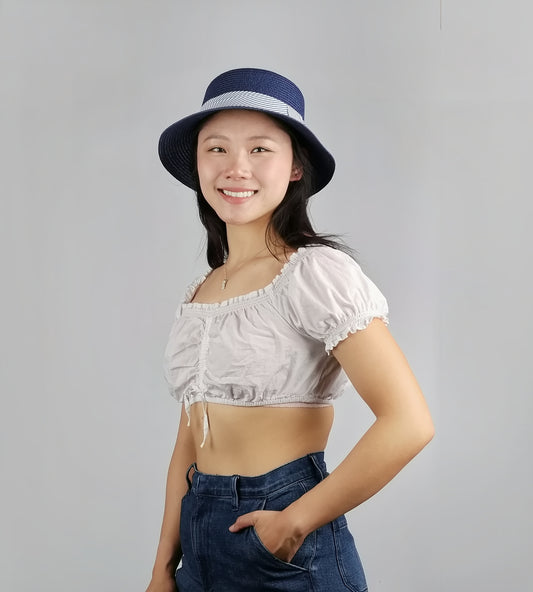 BRAID TRIM STRAW BUCKET CLOCHE HAT