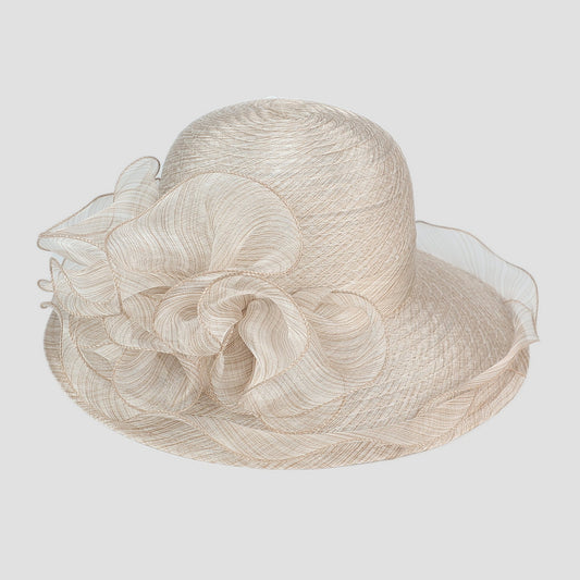 SATIN FLOWER FELT CLOCHE with FEATHER TRIM