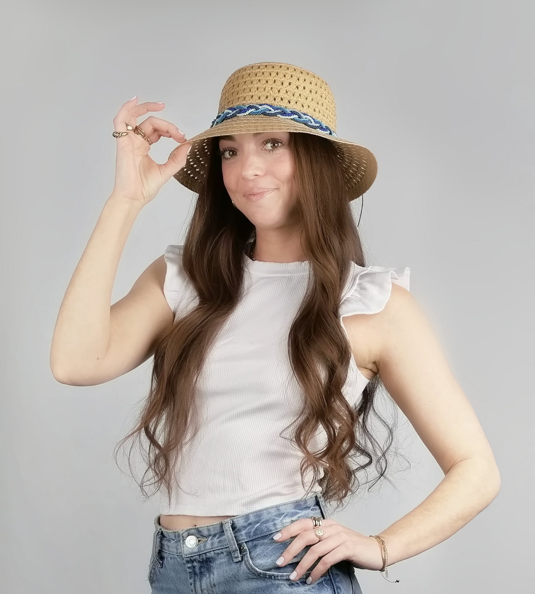 – Straw bucket or cloche hat