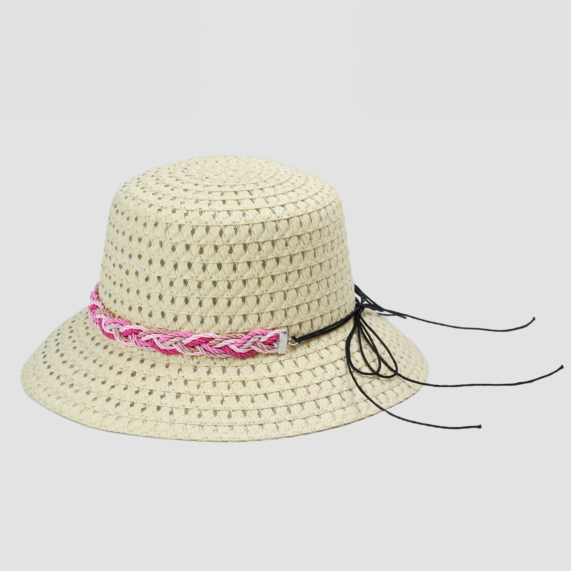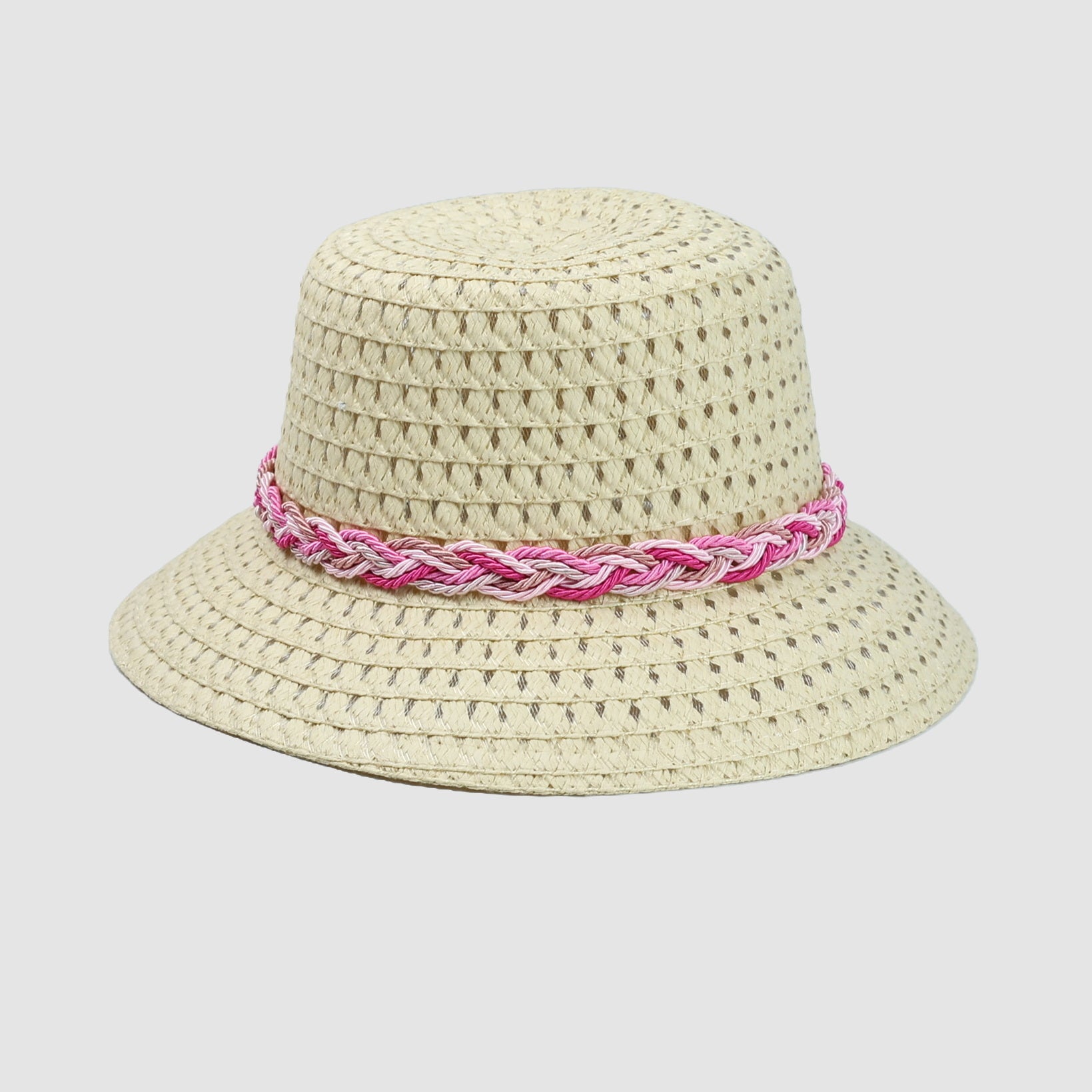 BRAID TRIM STRAW BUCKET CLOCHE HAT