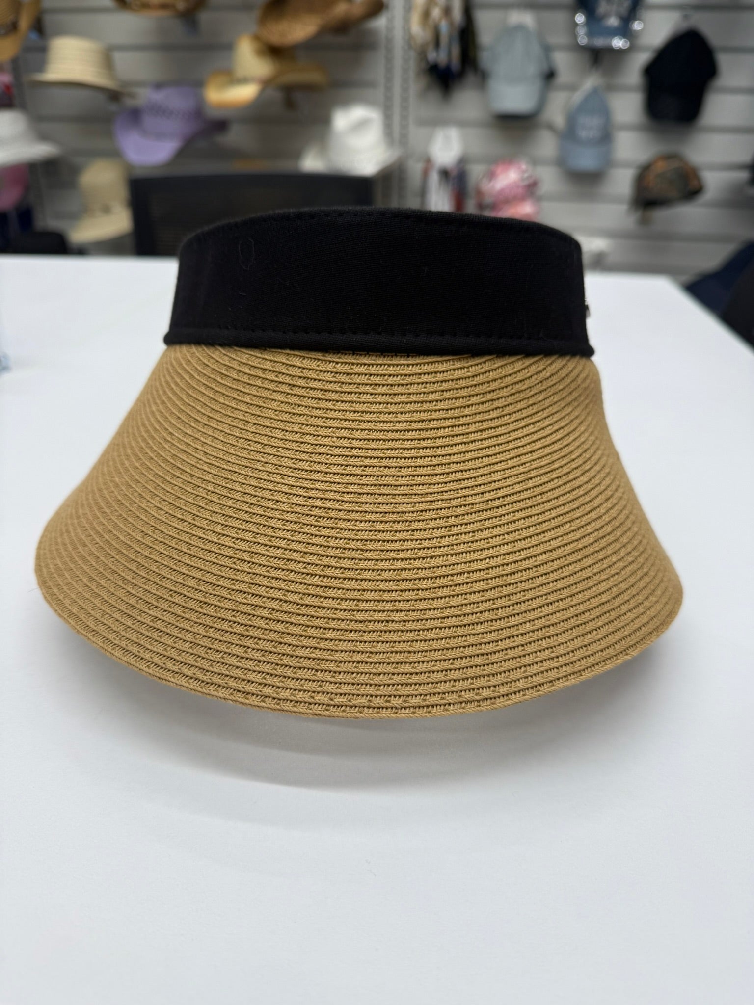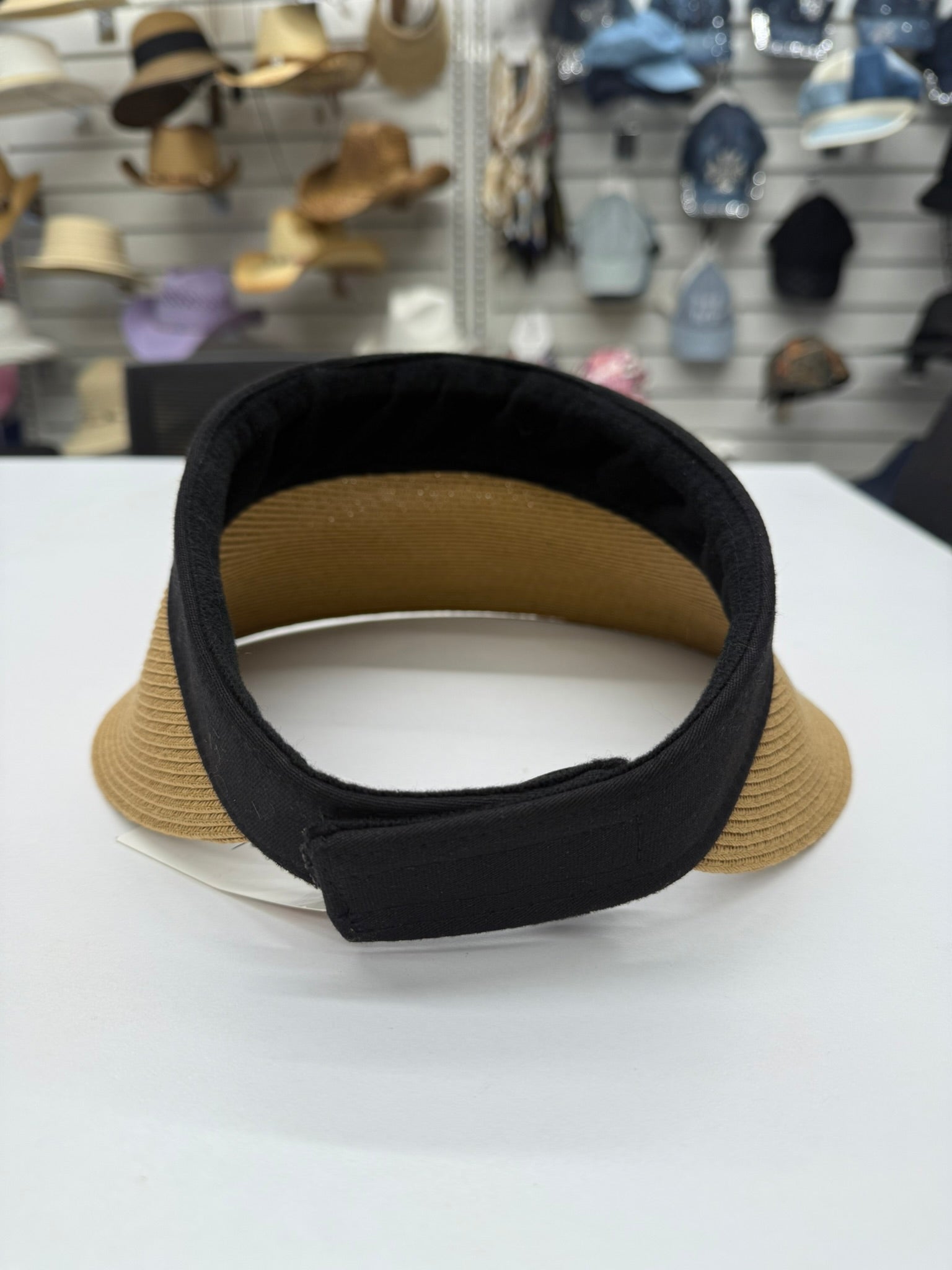 Straw Sun Visor Hat - Wide Brim Beach Visor with Black Band