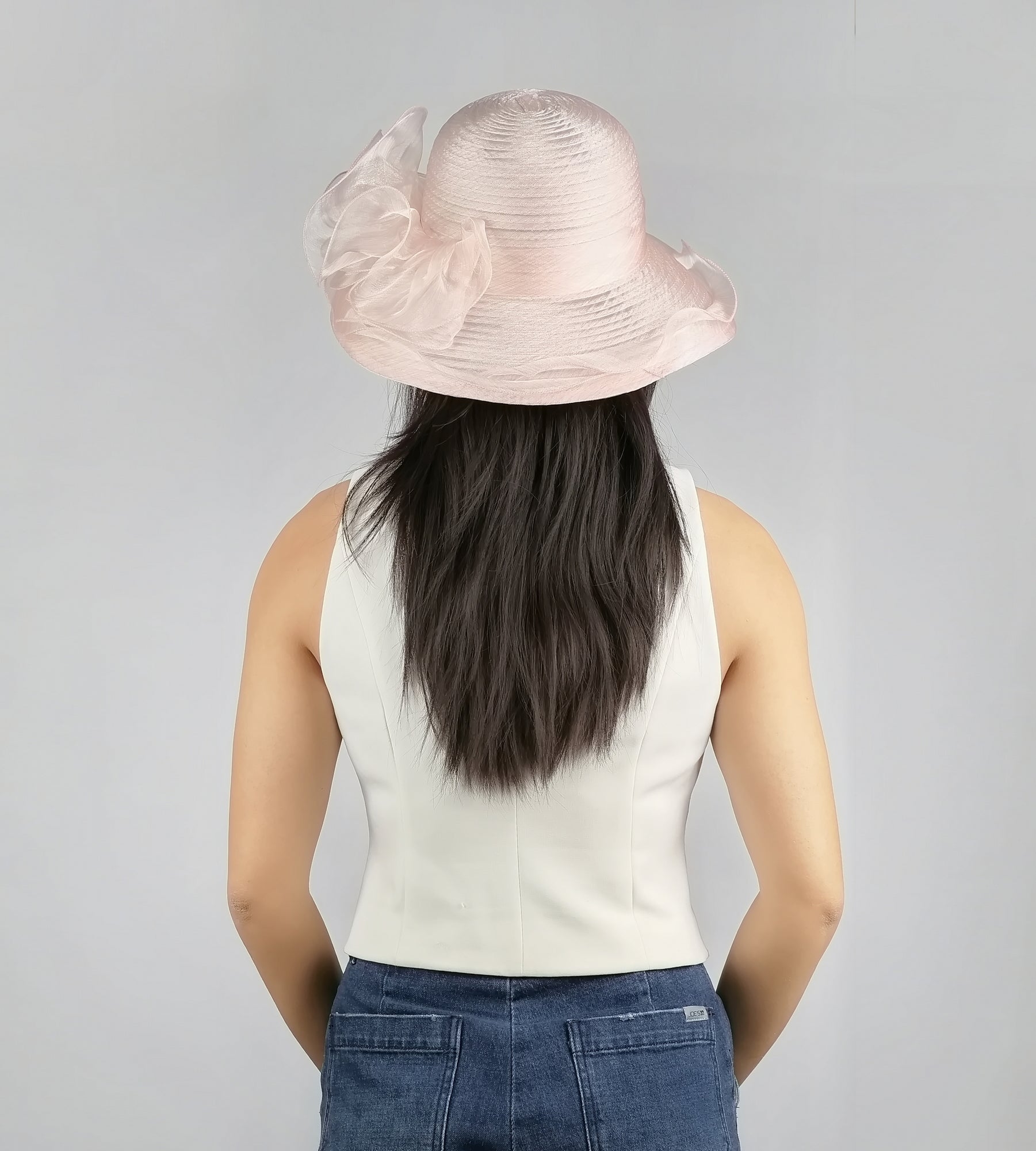 Oversized cloche with dramatic organza trim detailing. Perfect for any special occasion.. Wedding ..