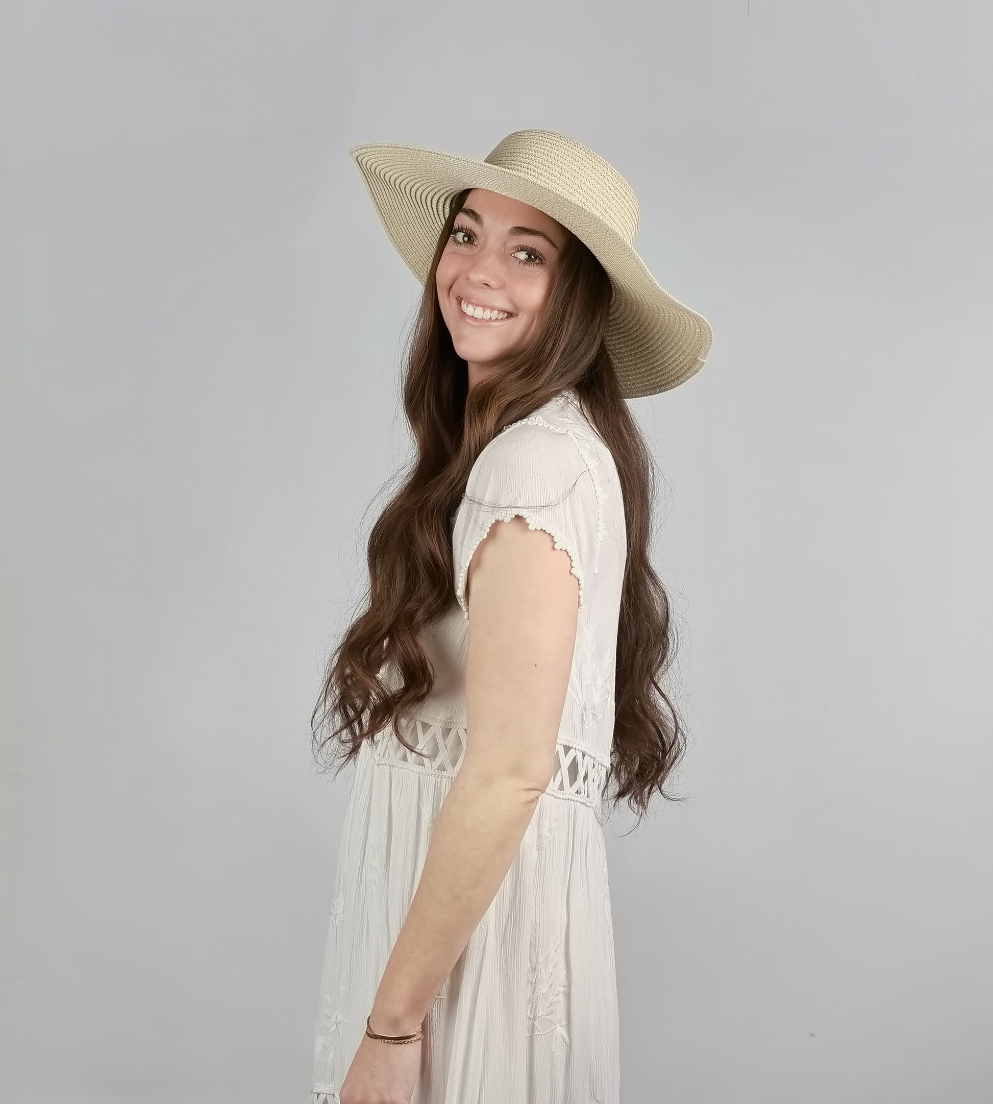 – Straw floppy with organza, chain and beautiful beaded band detail